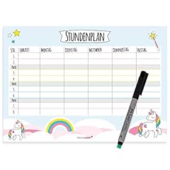 younikat Einhorn Stundenplan mit Selbstklebender Rückseite I DIN A4 I mit Stift abwischbar für Schule Grundschule Kühlschrank Kinder Mädchen Teenager I dv_545