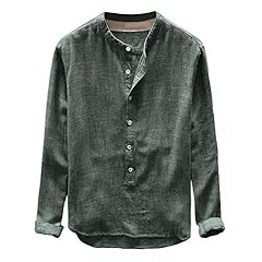 FIRSS Herren Einfarbig Hemd Freizeit Business Slim Fit Shirt V Ausschnitt Knopf Sweatshirt Leinen T-Shirt Tops Bluse Lange Ärmel Oberteile