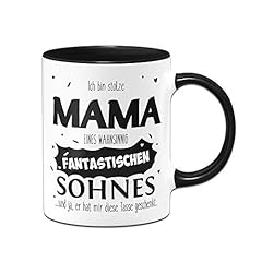Tassenbrennerei Tasse mit Spruch Stolze Mama Sohn, Geburtstagsgeschenk, Geschenk für Mama zum Muttertag - Tassen mit Sprüchen lustig (Schwarz)