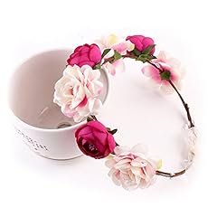 Yuccer Blumen Stirnband Mädchen, Böhmen Blumen Haarband für Damen Haarkranz Blumen für Hochzeit Festival Strand (Rose rot)