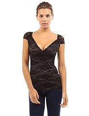 PattyBoutik Damen Rundhalsausschnitt ärmelloses Stretch Top mit Rippen und Spitze (schwarz S 36/38)