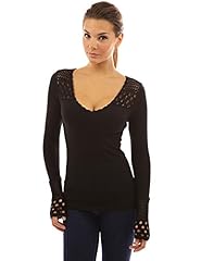 PattyBoutik Damen gestrickte Pullover mit V-Ausschnitt Langen Ärmeln und Spitzeneinsatz an der Schulter (schwarz S 36/38)