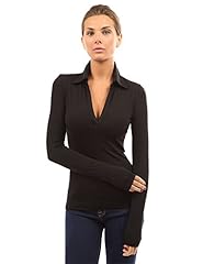 PattyBoutik Damen-Polohemd mit V-Ausschnitt und Langen Ärmeln (schwarz S 36/38)