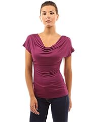 PattyBoutik Damen Wasserauschnitt Bluse mit Kurzen Ärmeln (Dunkles Magenta S 36/38)