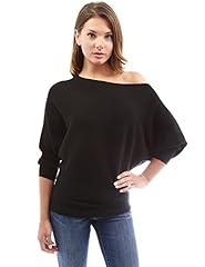 PattyBoutik Damen Schulterfreier Gerippter Pullover mit Fledermaus-Ärmeln und U -Boot Ausschnitt. (schwarz S 36/38)