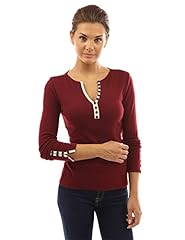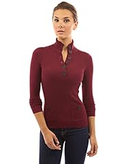 PattyBoutik Damen V-Ausschnitt Pullover mit Knöpfen gerippt (Burgund M 40)