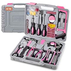 Apollo 120 teiliges Rosa Haushalts Werkzeugset mit den beliebtesten Rosa Werkzeugen: Zangen, Hammer, Maßband, Bügelsäge, Schraubenschlüssel, Schraubendreher und mehr im Werkzeugkasten