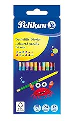 Pelikan 700146 12 Bicolor-Buntstifte, 24 Farben, rund, jeder Buntstift mit 2 verschiedenfarbigen Enden, farbig lackiert in Minenfarbe