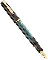 Pelikan 983411 Kolbenfüllhalter Classic M200, vergoldete Edelstahlfeder, B, grün-marmoriert
