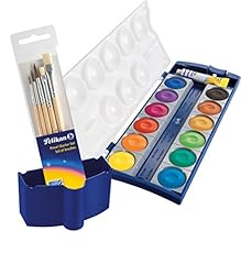 Pelikan 720250 Deckfarbkasten K12, 12 Farben + 1 Tube Deckweiß, Schul-Standard + Pinselset & Wasserbox