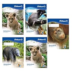 Pelikan 224824 Zeichenblock, A4, 20 Blatt, Deckblatt mit Tiermotiven (Motiv nicht auswählbar) (5x A4 | 20 Blatt)