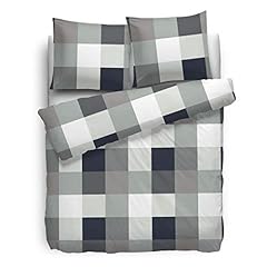 etérea Renforcé Baumwoll Bettwäsche - Rian Kariert - weich und pflegeleicht, 2 teilig 155x200 + 80x80 cm, Grau