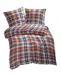 etérea 2 TLG. Renforcé Bettwäsche Kari Kariert - 100% Baumwolle Bettbezug - 135x200 cm + 80x80 cm, Orange Weiss
