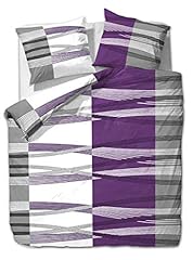 etérea Mikrofaser Bettwäsche - Hunter Streifen - weich und Allergiker geeignet, 3 teilig 200x220 + 2Stk 80x80 cm, Lila