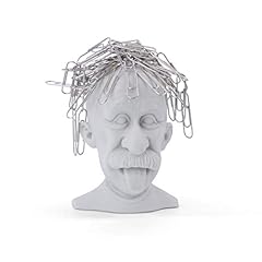 MUSTARD - Genius Paperclip Holder I Geniekopf für Büroklammern I Magnetischer Büroklammerhalter I Albert Einstein I lustiges Büro Gadget I Halter für Büroklammern I Schreibtisch I Einstein - Grau