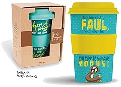 Bamboo Becher to go "Ich bin nicht FAUL ..." Faultier 400 ml für Kaffee/Tee: aus Bambus mit Silikondeckel und -halter in Geschenkverpackung