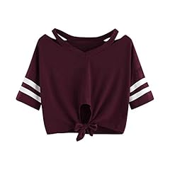 Gestreift Oberteil Damen, Ulanda Frauen Sexy V Rückenfrei Streifen T Shirt Bluse Teenager Mädchen Kurzarm Basic Baumwolle Sommer Shirt Crop Tops Hemd Pullover Sale