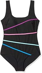 DELIMIRA Damen Einteiler Bademode - Gestreift Schalen Slim Schwimmanzug Schwarz 42