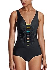 DELIMIRA Damen Einteiler Bademode - Gestreift Schalen Slim Schwimmanzug