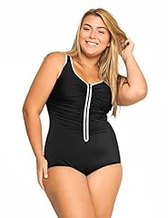 Delimira Damen Badekleid Badeanzug - Reißverschluss Einteiler mit Röckchen Große Größen Schwarz 50