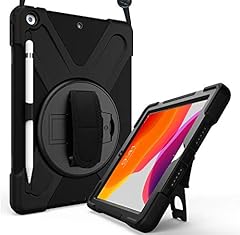 ProCase Hülle mit Stifthalter Gurt Handschlaufe für iPad 10.2 Zoll 7th Gen.2019 Schutzhülle mit Pencil Holder 360°Drehständer und verstellbar Schultergurt,Stoßfest Robust Case Hybrid Cover -Schwarz