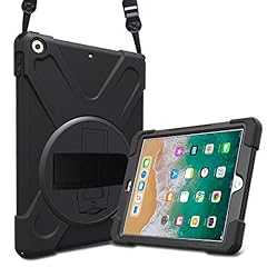 ProCase iPad 9.7 2018/2017 6/5 Gen Hülle Case Handschlaufe, 3 in 1 Robust Heavy Duty Stoßfest Hybrid Full Body Schutzhülle Cover, mit 360°Drehständer und verstellbar Riemen Schultergurt -Schwarz