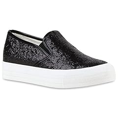 stiefelparadies Damen Sneaker Slip Ons mit Plateau Glitzer Flandell
