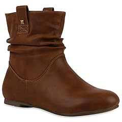 Stiefeletten Damen Schlupfstiefel Stiefel Flach Boots Nieten Leder-Optik Schlupfstiefeletten Schuhe 120941 Hellbraun 41 Flandell