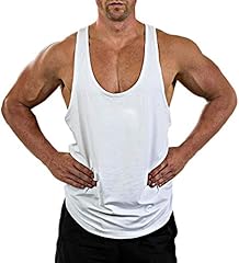 Herren Gym Muscle Weste Solid Color Low Cut Bodybuilding Tank Top Technische Stringer Lifting Fitness Übung Laufen Outfit Tops M-XXL (M, Weiß)