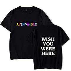 Herren Frühling Sommer lässig Rundhalsausschnitt Kurzarm Travis Scott Astroworld Print Regular Fit T-Shirt Tops (L, schwarz)