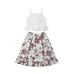 Kleinkind Kleinkind Baby Mädchen Kleidung Set Straped Sleeveless Tops + Floral Plissee Langes Kleid 2 Stück Baby, Mädchen Weiße Tops