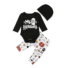 Baby Mädchen Jungen Halloween Outfits Set Langarm Brief T Shirts Floral Hosen Hut 3 Stück Baumwolle Kleidung Set für 0-18 Monate (0-3 M, schwarz 1)