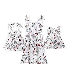 Mutter Tochter passenden Sommerkleider Mama und ich Floral Bedruckte Schultergurt V-Ausschnitt A-Line Midi Sommerkleid Strandkleid (Baby Mädchen-4-5T, Baby Mädchen - Weiß)