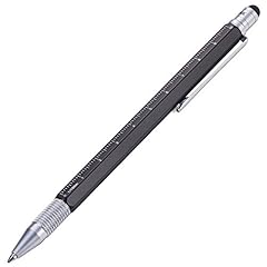 Troika Multitasking-Kugelschreiber (schlank), Zentimeter-/Zoll-Lineal, 1:20/1:50 Skala, Stylus, schwarze G2 Großraummine, Aluminium/Messing, matt, schwarz