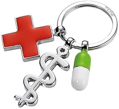 TROIKA Schlüsselanhänger GET WELL - KR14-08/CH - glänzend verchromt - Schlüsselring mit mit 3 Anhängern: Äskulapstab, rotes Kreuz und Pille - das Original