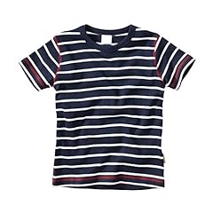 WELLYOU, Kinder Kurzarm T-Shirt, dunkel-blau Weiss, Geringelt, für Jungen, 100% Baumwolle, Größe 104-110