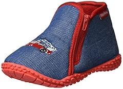 Playshoes Kinder Hausschuhe mit praktischem Reißverschluss Feuerwehr-Motiv,Blau (jeansblau 3),18/19 EU