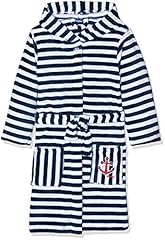 Playshoes Jungen Fleece Ringel Maritim Bademantel, Blau (Marine/Weiß 171), 146/152