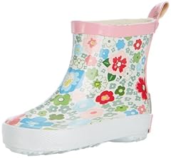 Playshoes Kinder Halbschaft-Gummistiefel aus Naturkautschuk, trendige Unisex Regenstiefel mit Reflektoren, mit Blumen-Muster, Mehrfarbig (1-weiß), 24 EU