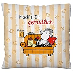 Die Geschenkewelt 49731 kleines Plüschkissen, Motiv Gemütlich, ca. 25 cm x 25 cm, Zier-Kissen