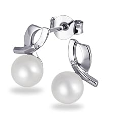 Goldmaid Damen-Ohrstecker Süßwasserperle 375 Weißgold 2 Diamanten 0,03 ct.