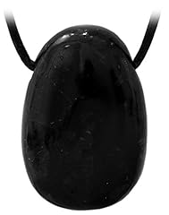 Kaltner Präsente Geschenkidee - Lederkette für Damen und Herren mit Trommelstein Anhänger aus dem Edelstein Schungit Schwarz