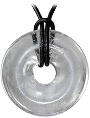 Kaltner Präsente Geschenkidee - Lederkette für Damen und Herren mit Donut Anhänger aus dem Edelstein Bergkristall (Ø 30 mm)