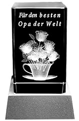 Kaltner Präsente Stimmungslicht - EIN ganz besonderes Geschenk: LED Kerze/Kristall Glasblock / 3D-Laser-Gravur Blumen FÜR DEN BESTEN Opa DER Welt