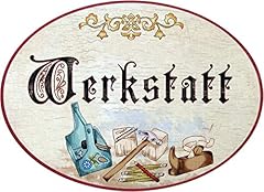 Kaltner Präsente Geschenkidee - Holz Geschenkartikel Deko Türschild im Antik Design Dekoartikel Motiv Werkstatt (Ø 18 cm)