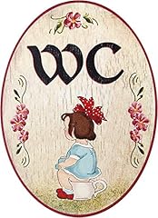 Kaltner Präsente Geschenkidee - Holz Geschenkartikel Deko Türschild im Antik Design Dekoartikel Motiv WC Toilette Damen MÄDCHEN (Ø 18 cm)