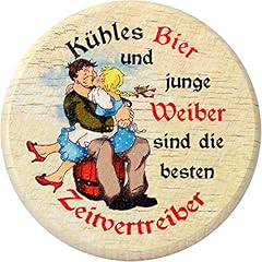 Kaltner Präsente Geschenkidee - Insektenschutz für Gläser und Getränke aus echtem Holz / Bier Wein Bierdeckel Biergläser Weingläser Tassen Biergarten / Motiv Humor - Kühles Bier und junge Weiber sind die besten Zeitvertreiber
