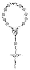 Kaltner Präsente Geschenkidee - Kurzer Auto Rosenkranz für Damen und Herren mit Kreuz Anhänger Marienbild und Glas Perlen Farbe Weiß (Länge 17 cm)