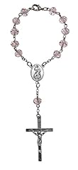 Kaltner Präsente Geschenkidee - Kurzer Auto Rosenkranz für Damen und Herren mit Kreuz Anhänger Marienbild und Glas Perlen Farbe Pink Rosa (Länge 17 cm)