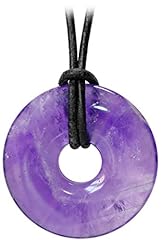 Kaltner Präsente Geschenkidee - Lederkette für Damen und Herren mit Donut Anhänger aus dem Edelstein Amethyst Violett (Ø 30 mm)